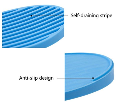 -. Feature : Specail design Silicone Soap Dish / Product Dimension(L x W x H): 4.7" x 3.1" x 0.4" / Self-draining stripe allow water to drain so soap can dry / Soft silicone will NEVER rust or get mouldy, easy to clean / Package includes 4 pcs soap dishes