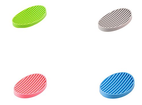 -. Title : B&S FEEL 4 Pack Assorted Color Oval Silicone Soap Dish Set, Soap Saver Holder Tray