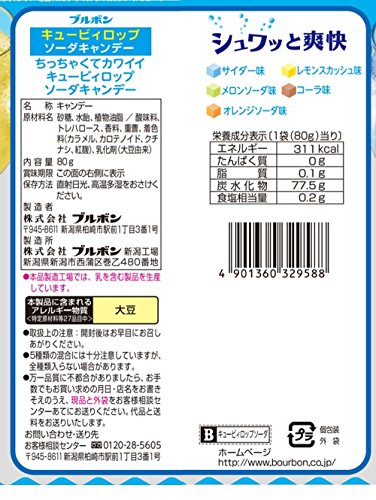 原材料:砂糖、水飴、植物油脂 / 酸味料、トレハロース、香料、重曹、着色料(カラメル、カロテノイド、クチナシ、紅麹)、乳化剤(大豆由来)