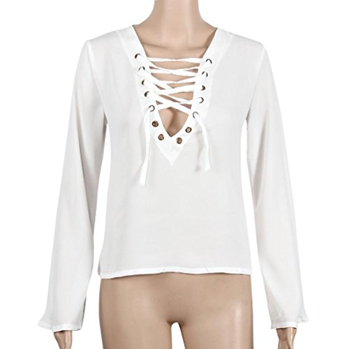 (Bolayu)/Women/Shirts Blouses/DIRECT FROM USA/Bolayu Sexy Women Bandage V Neck Long Sleeve Chiffon Blouse T-Shirt Tops