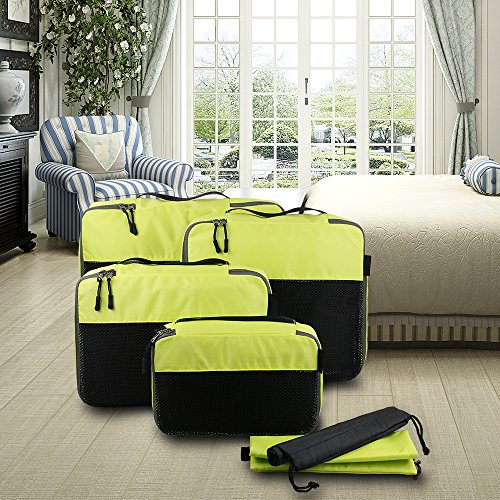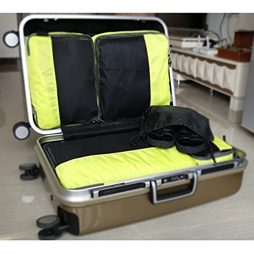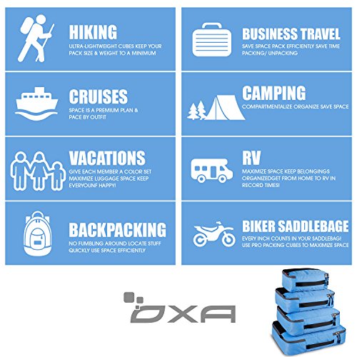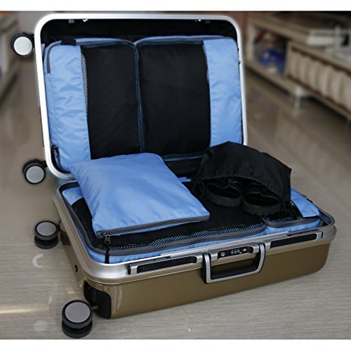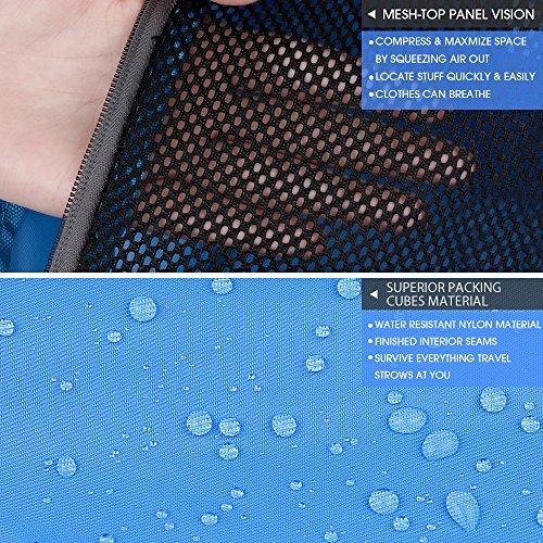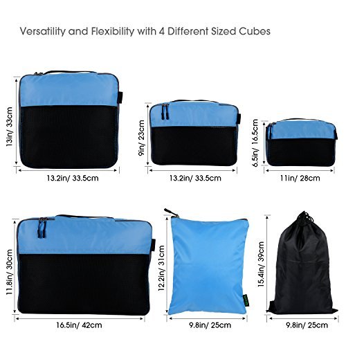 -. Feature : PACKING CUBES DIMENSIONS: Different size to accommodate needs: X-Large (16.5"*11.8"*3.5"), Large ( 13.2"*13"*3.5"), Medium ( 13.2"*9.1"*3.5"), Small ( 11"*6.5"*3.5"), Shoes Bag ( 15.4" x 9.8"), Large laundry bag ( 12.2" x 9.8"). / SUPERIOR PACKING CUBES MATERIAL: 100% waterproof nylon with finished interior seams and breathable mesh-top panels, easy to wash and dry, great for organising and tidying everything. Note: Mesh part is not Waterproof! / KEEP ORGANIZED: Keep your things neat and organized, and you can find things easily instead of digging through a stack of clothes in your lage, make your travel so much easier. / CONVENIENT TO USE:Smart companion to various occasions, and an extreme convenient way to keep your items organized for family breaks, business travel, backpacking, hiking, camping, RV and cruise holidays, perfect product for packing! / SEPARATE CLEAN & DIRTY CLOTHES: Laundry Bag Included, protecting clothes and lage from wrinkles, dirty and damage during the traveling.