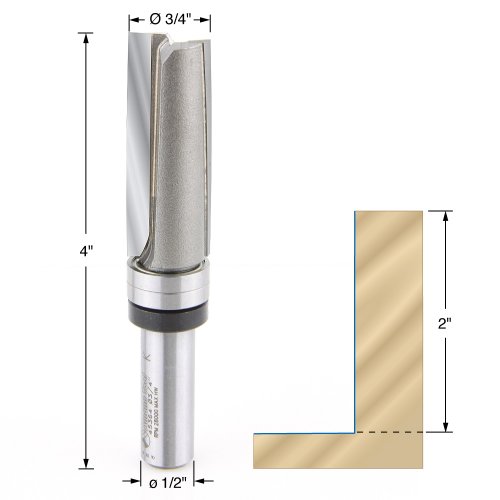 Amana Tool 45364 Down Shear Plunge Template 3/4-Inch Dia x 2-Inch Cut Height x 1/2 Shank 2-Flute Carbide Tipped Router Bit with Upper Ball Bearing