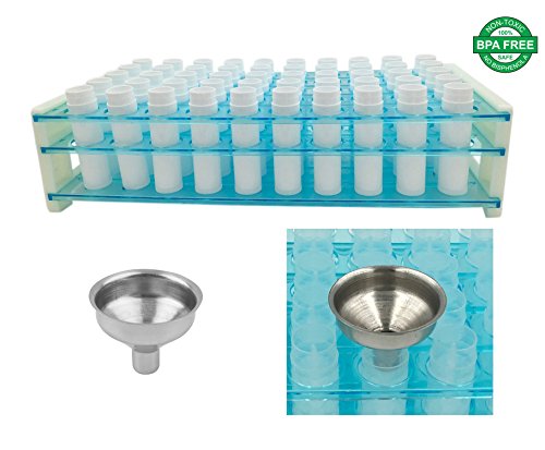 - EASY LIP BALM TUBE FILLING: Supplies for homemade, personalized, organic lip balm for chapped lips – 50 lipstick containers (White) & Easy Pour Stainless Steel Small Funnel & Plastic Test Tube Rack Tube Holder - Holds 50 lip balm tubes. The plastic test tube rack holds 50 stick tubes and is detachable. Test tube holder is 8.5 x 4 x 1 inches.