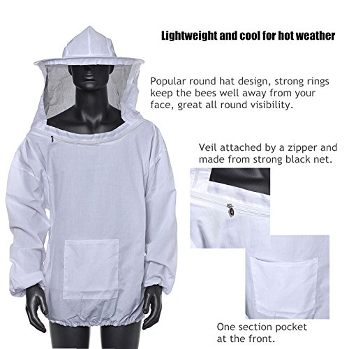 -. Feature : Package included: 1 x Beekeeping Jacket Veil / Excellent design with light weight, protective fabric / Machine Washable; Elastic cuffs and waste band / One Size Fits Most! / The light weight fabric provides protection against stings while keeping you cool.
