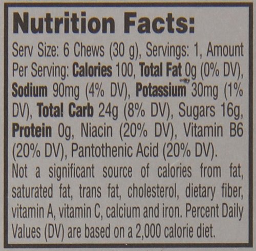 ReleaseDate : 2013-12-15 Studio : Gatorade Publisher : Gatorade Binding : Grocery Product Description Built to adapt to your game, Gatorade Prime Energy Chews let you call the shots when it comes to energy. Eat all six carb chews before training to prep muscles for action, or in the midst of competition to resupply fuel levels. 0