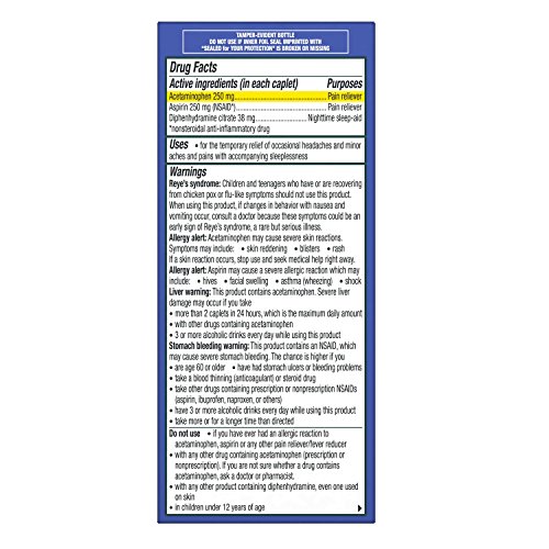 ReleaseDate : 2015-10-30 Studio : Everready First Aid Publisher : Everready First Aid Binding : Health and Beauty Product Description Excedrin PM is a headache medicine that combines 2 effective pain relievers along with a sleep aid, so you can get fast relief from evening headaches. It works best when used for the temporary relief of occasional headaches at night, and minor aches and pains with accompanying sleeplessness. Excedrin PM is a non-steroidal, anti-inflammatory solution for a good night’s sleep. The caffeine-free, triple action formula is a non-habit forming nighttime solution. Adults and children 12 years of age and over: Take 2 tablets at bedtime, if needed, or as directed by a doctor. 0