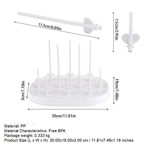 Specification:The Baby bottle drying rack is made of BPA Free and Non-toxic ABS.Size:32.5*17cm/12.75*3.7Inch.