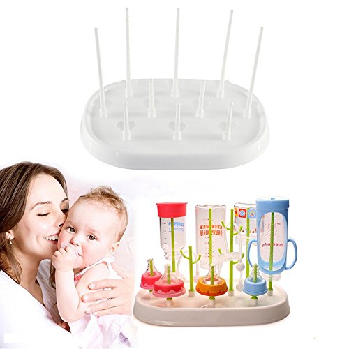 Large Capacity:This high quality plastic molded baby bottle drying racks consist of 10 holders, 5 long and 5 short.