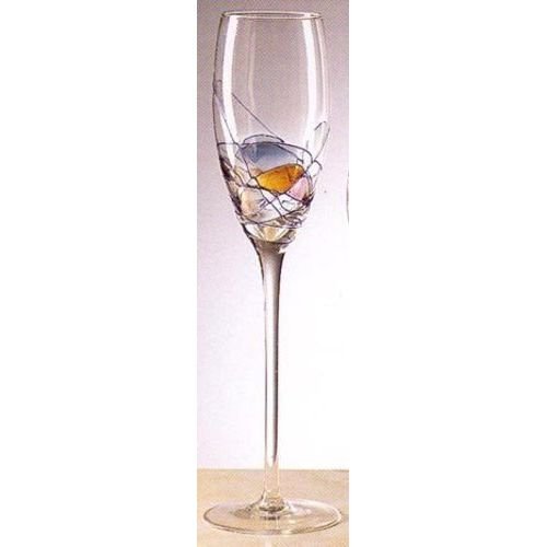 -. Feature : Dimensions: 2D x 10H in. / Includes 4 champagne flutes / Handcrafted of mouth-blown glass / Individually formed with etched color details / Hand-wash only