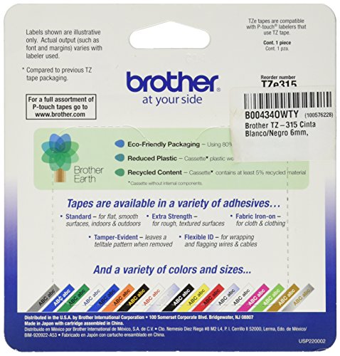 -. Title : Brother P.R.Inter P-Touch TZE315 TZe Standard Adhesive Laminated Labeling Tape, 1/4w, White on Black (BRTTZE315)