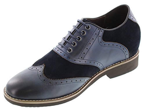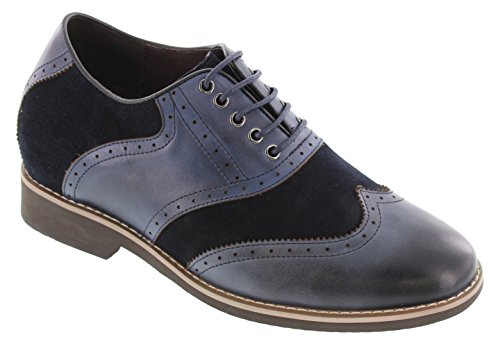 CALTO - G65011 - 3.2 Inches Taller - Height Increasing Elevator Shoes - Nubuck Navy Blue Lace-u...