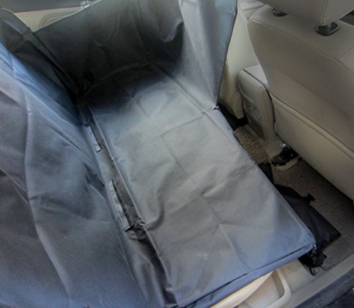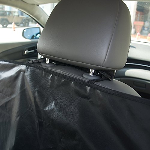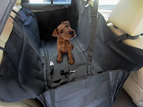 -. Feature : Pet car hammock 49" long(window to window) 18" wide when folded up two sides are 13" tall;Black;Fit most Standard Vehicles,SUV / Waterproof & Nonslip,Made of durable Oxford cloth with plated PVC true waterproof,protect your car seat from pet hair, mud and water,no smell and no harm to your pet.The nonslip material with multiple secure straps keep the pet seat cover in place / Versatile Size and Easy to Attach, two clip-together seat anchors and the four adjustable headrest loops (two for the front seats, and two for the back seats).Adjustable straps attach itself to vehicle's front and rear headrests; Adjusts to fit cars, mini- and SUV's. Two openings allow for accessing the seatbelt buckles and come with 1 free pet seat belt / Durable and Easy to Clean,Lantoo car hammock seat cover for pets offers a sleek appearance and red durability for long-lasting use; Easy to clean with a damp cloth or machine / Zips allow you to split the cover if required so that you and your pets can sit together on the back seat.Also it is convenient for dog to get in/out of car.Your satisfaction is our P.R.Iority.If our SUV dog car seat protector don't serve your needs or meet your standards in any way, just contact us. You can be confident that we will be around to stand behind OUR LIFETIME WARRANTY & all our car seat covers are backed by 100% MONEY BACK GUARANTEE
