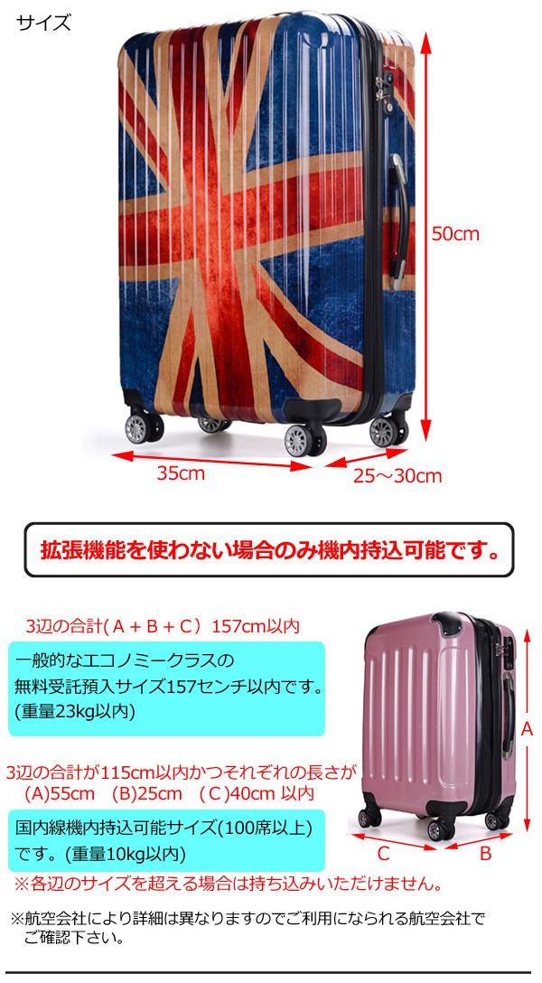 | 仕様 | 容量:約35~40L 拡張機能 キャスター8輪(Wキャスター×4) TSAロック搭載 無料受託預入サイズ(157センチ以内) 国内線機内持込可(100席以上)※拡張機能を使わない場合のみ |