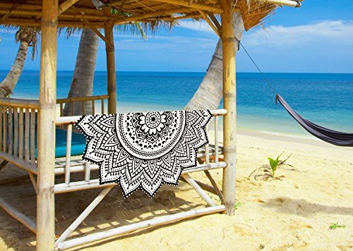 Madhu International Cotton White Black Mandala Round, Beach Throw, Yoga Mat, Table Cover, Picnic Mat, Roundies