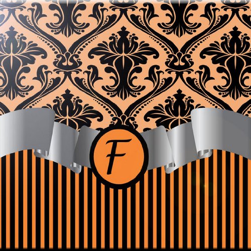 Rikki Knight RK-12intilec-2095 12" X 12" Letter "F" Orange Damask Stripes Monogrammed Design Ceramic Art Tile