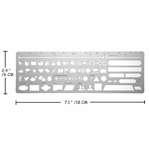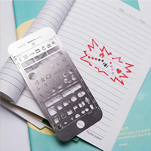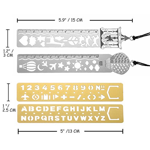 Package contains: 7 x stenciled drawing scales (Web UI / IOS / Alphabet / life element) 2 x Gold stenciled bookmark drawing scales (Hot air balloon / Trojan) Accurate hollowing process, can depict the pattern more accurately, with the use of handwritten journals, to make your content more abundant. Featured stainless steel, durable and can be used repeatedly Dozens of vivid pattern designs to make your diary, journal or other graffiti more simple With the multi-function drawing scales, you can get lettering, collection, number, weather, animals, traffic, punctuation and other templates, to diy your own album, travel diary, weekly plans, etc.Feature