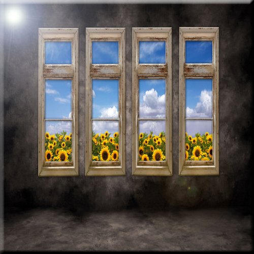 Rikki Knight RK-12intilec-8979 12" X 12" Beautiful Sunflower View Distressed Interior Windows Design Ceramic Art Tile