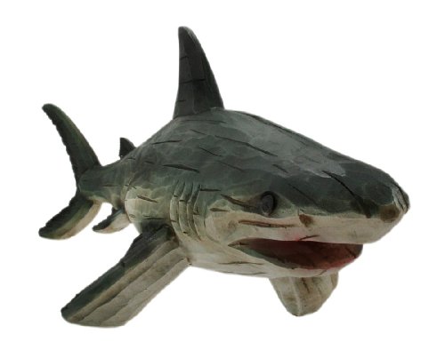 Aged Wooden Look Shark Figure Statue