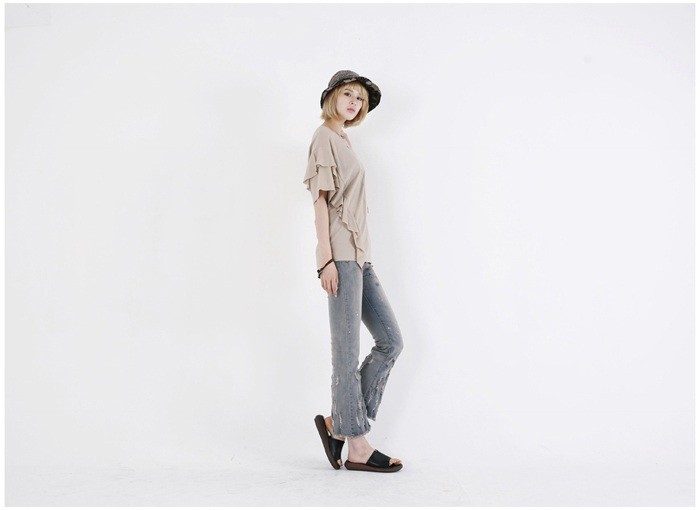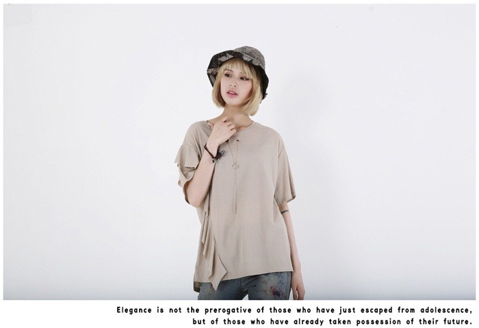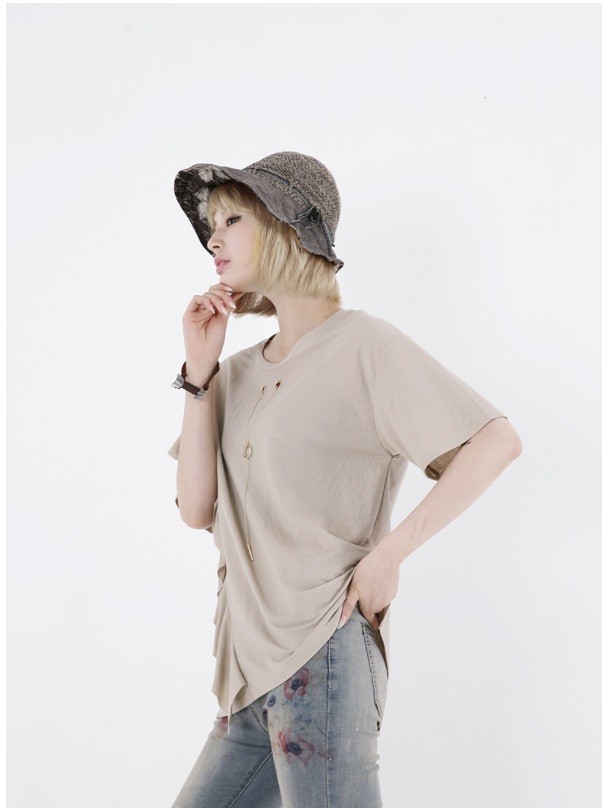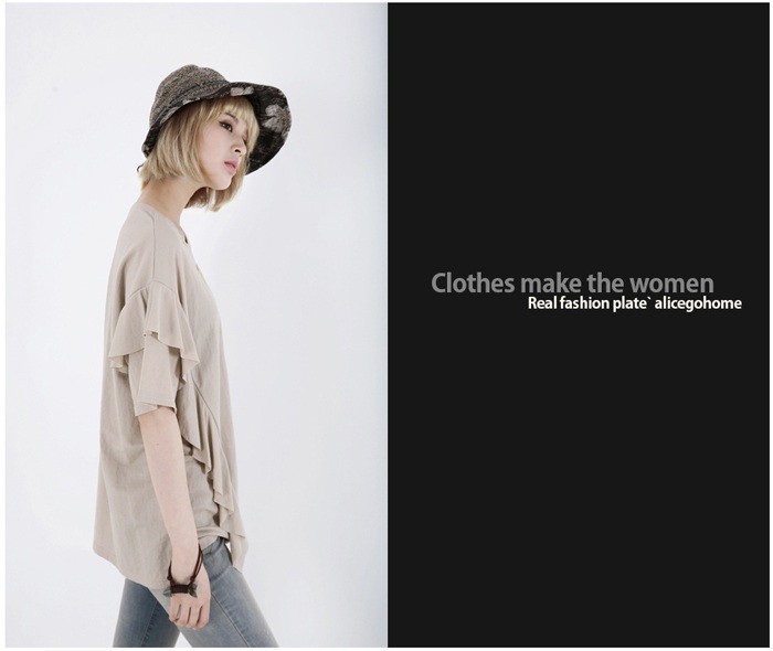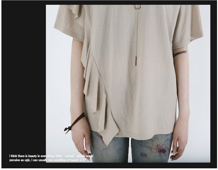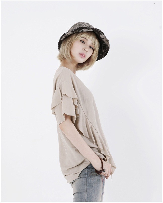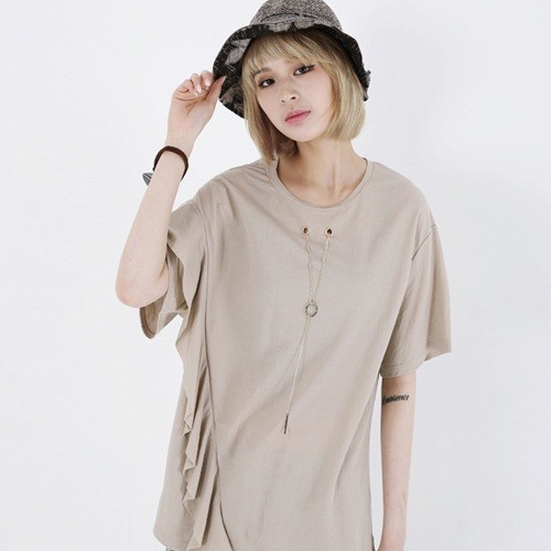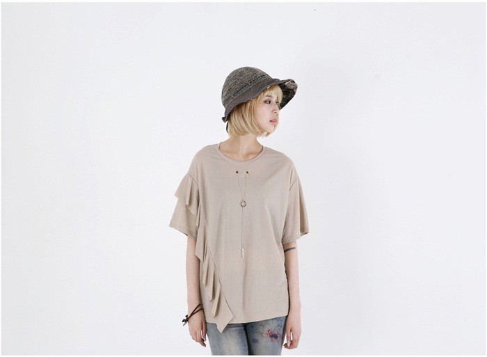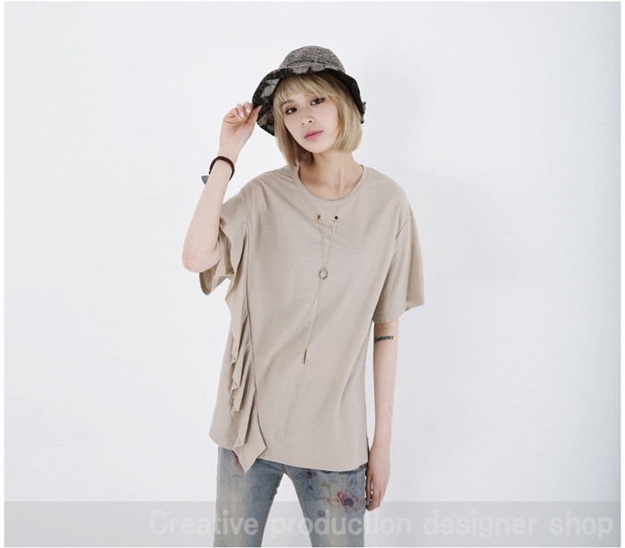 商品名:トップス レディース Tシャツ 無地 フリル 半袖 春 2018 モード系 個性的 40代 ファッション