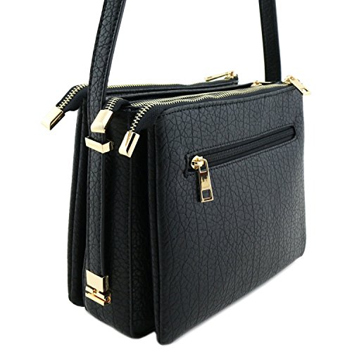 This three compartment zipper top crossbody looks simple, but bold in style and function.