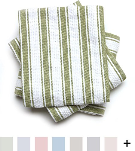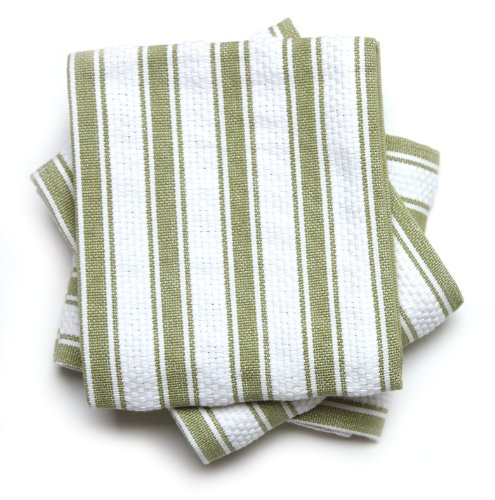 Mahogany Basket Weave Kitchen Towels with Color Stripes , Set of 3, Green