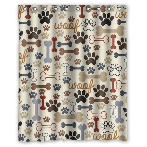 Dog Paws and Bones Pattern Bathroom Shower Curtain , 100% Polyestey 60 X 72 inch
