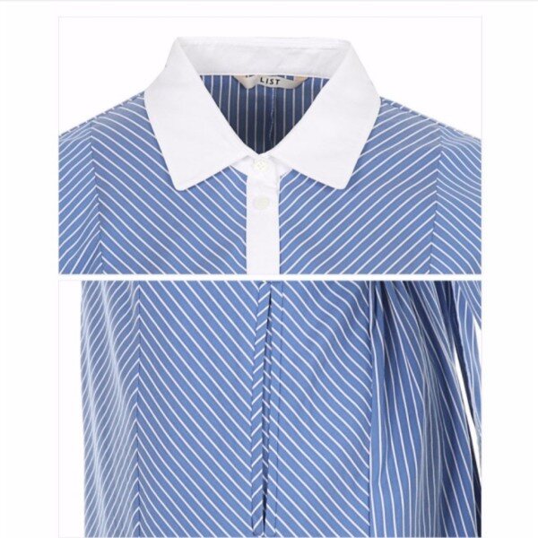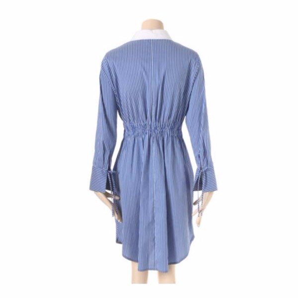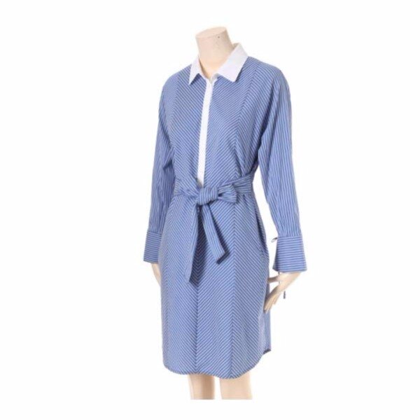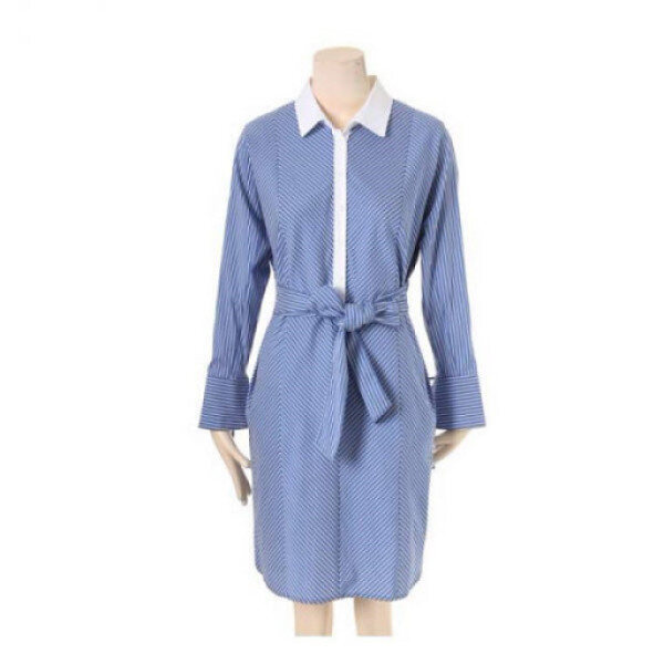 허리 뒷부분은 밴딩 처리를 해주었으며 벨트로 실루엣 조절이 가능한 스트라이프 원피스 입니다