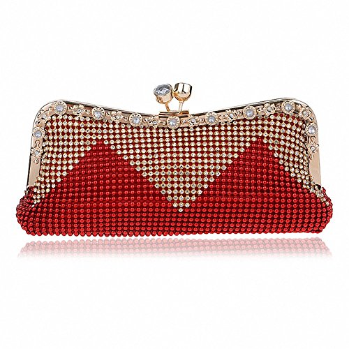 Features a fully beaded rhinestones, metal hardware and polyester lining