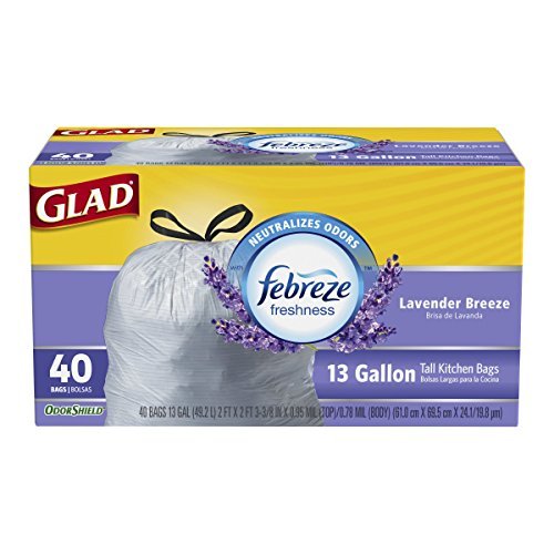 -. Title : Glad OdorShield Tall Kitchen Drawstring Trash Bags, Lavender, 13 Gallon, 40 Count by Glad Indoor Trash