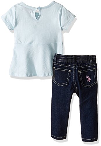 -. Binding : Apparel -. Brand : U.S. Polo Assn. -. Department : baby-girls -. Feature : Lace overlay on front peplum top / Stretch denim jeans have elastic back waistband / Buttons, shanks and rivet logo embossed / Embroidered logos -. Label : US Polo Assn. Children's Apparel -. Manufacturer : US Polo Assn. Children's Apparel -. ProductGroup : Apparel -. ProductTypeName : PANTS -. Publisher : US Polo Assn. Children's Apparel -. Studio : US Polo Assn. Children's Apparel -. Title : U.S. Polo Assn. Girls' Short Sleeve Peplum Top and Stretch Denim Jean