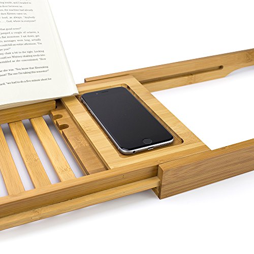 Have the blissfully soothing bath experience with the help of this beautifully crafted bathtub caddy and tray. It safely and securely holds your smartphone, iPad, tablet, book, magazine, kindle or anything that you might need to make your bathing ritual a supreme experience of complete relaxation and indulgence. Enjoy your favorite drink while you're at it! The glass holder is perfect for your wine, champagne, soda, juice, smoothie or tea. Enjoy small snacks too! Some cheese, fruits, nuts or cold cuts perhaps? What's great about this is that you'll never worry about getting your things wet because it's cleverly designed and fool proof! It stays in place so it won't ever slip or slide. In addition, the sturdy material and excellent construction ensures that this bath accessory will last you for years! A great investment for your home, as well as, a good gift men and women who enjoy relaxing and pampering themselves. BellaSentials wants you satisfied. In an unlikely event that you have any complaints about this product's quality, let us know and we will address your concern straight away with a replacement or your money back.
