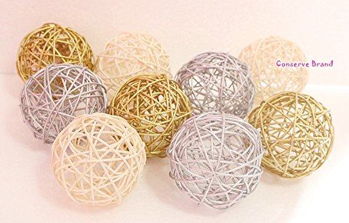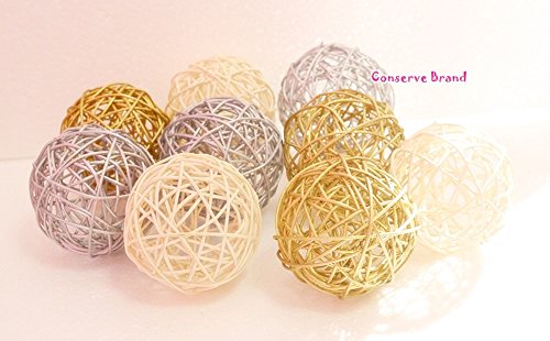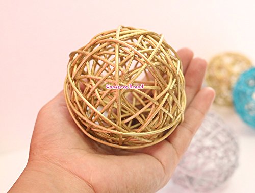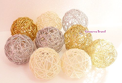 Christmas Gift : Gold, Silver, White Medium Rattan Ball, Wicker Balls, DIY Vase And Bowl Filler Ornament, Decorative spheres balls, Perfect For Decoration And Party 3 - 3.5 inch, 9 Pcs.
