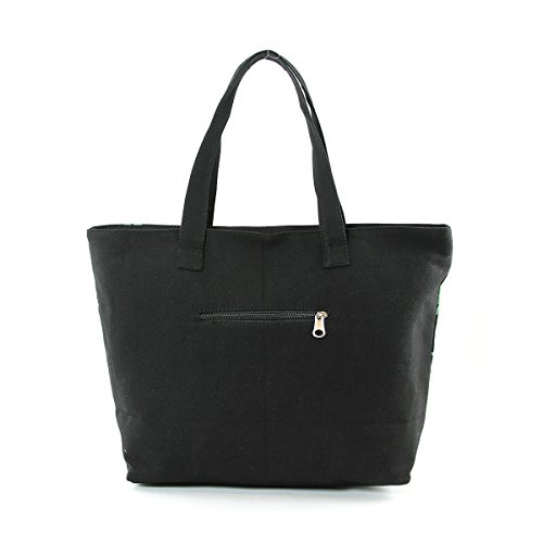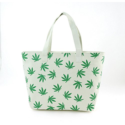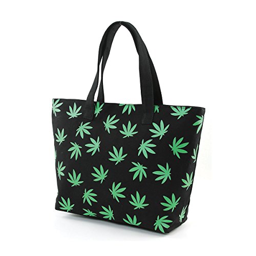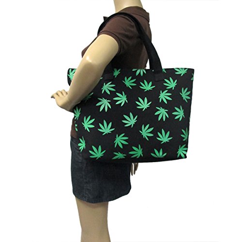 Fresh Green Marijuana Palmate Leaves Printed Canvas Tote Bag Black