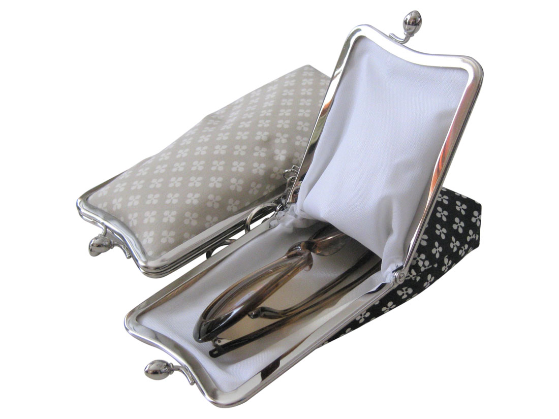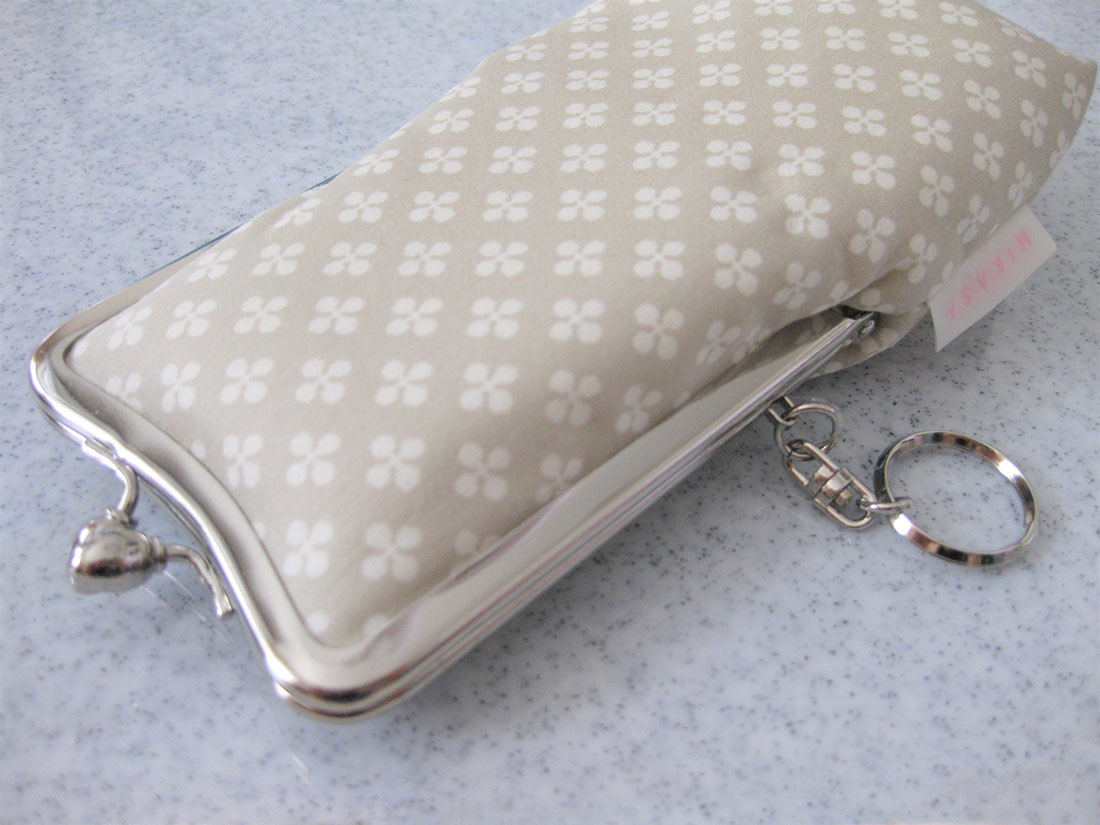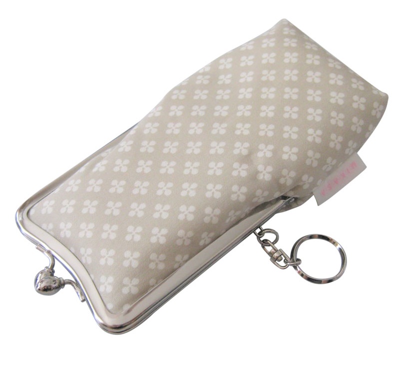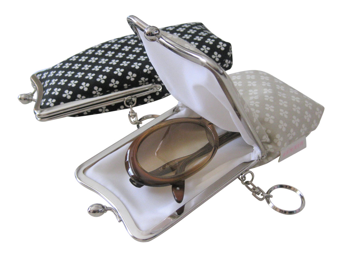 【日本製】縦長がま口マルチポーチ メガネ・サングラスポーチ キーリング付