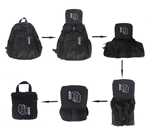 COMPACT. Folds into zippered inner pocket to fit anywhere. Unfolds from pocket to backpack. Must have on every trip.