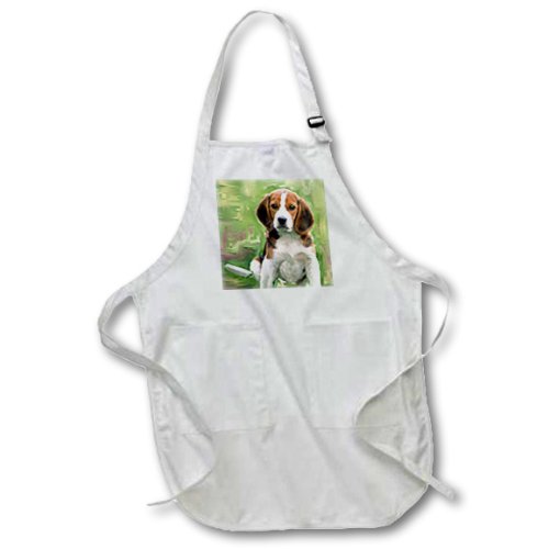 3dRose apr_4020_1 Beagle Puppy 22 by 30-Inch Apron with Pockets, Full, White