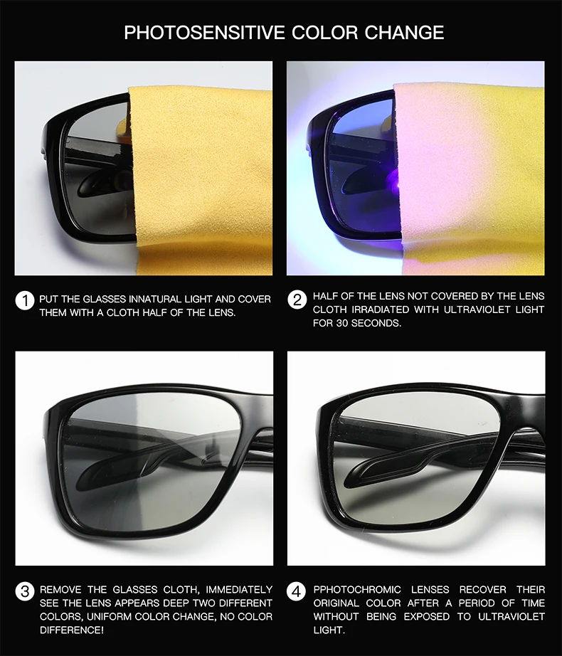 Package:Sunglasses*1 Cleaning Cloth*1 Glasses Case*1 Box*1 Text Card*1