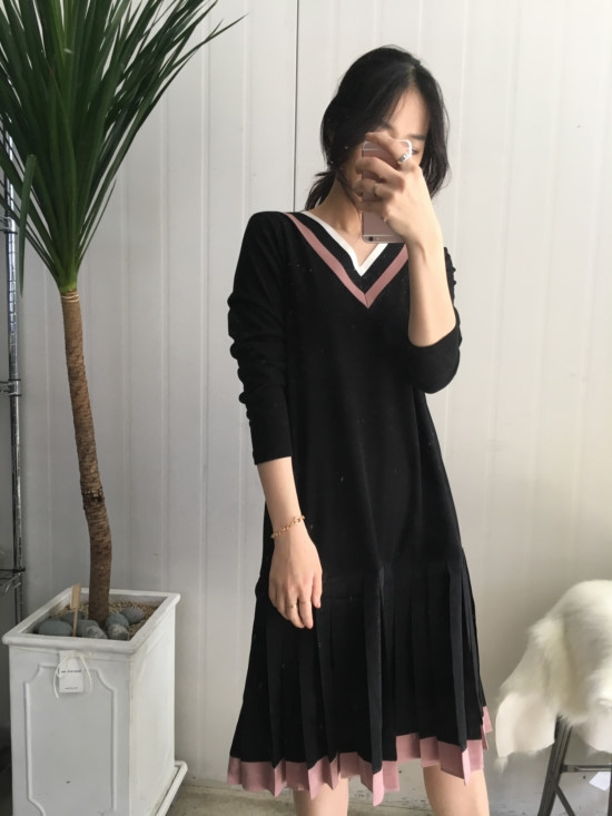 네크라인 브이라인으로 여리여리해보이는 효과가 있어요