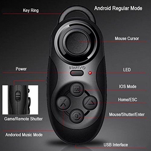 SUNNYPEAK Wireless Bluetooth Gamepad Remote Controller Compatible with 3D VR Glasses Google Cardboard Selfie Camera Shutter Wireless Mouse Music Player iPhone iPad Ebook Tablet PC TV (Black)