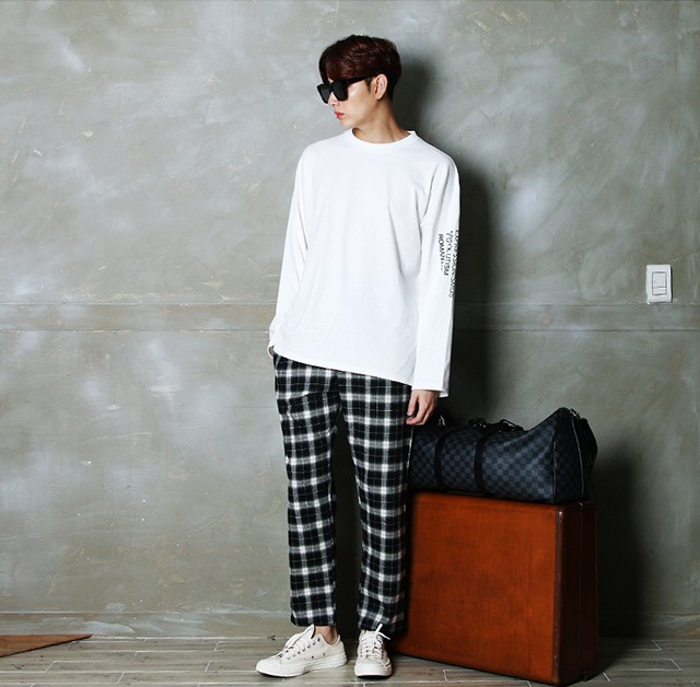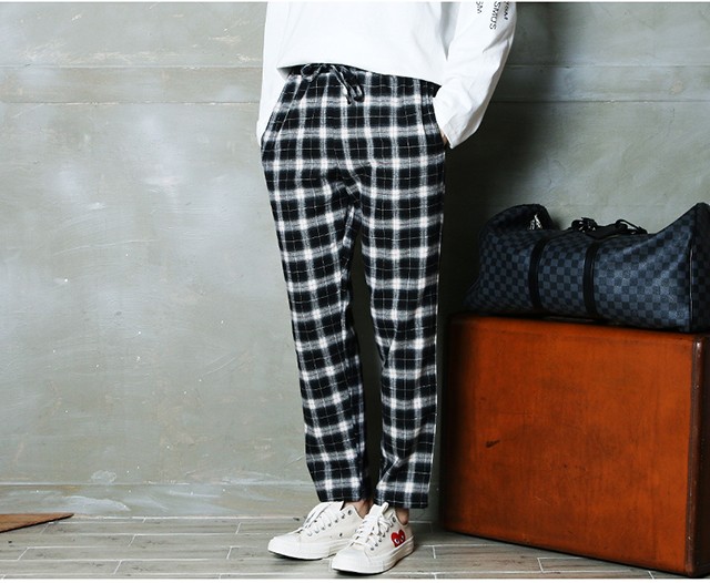 チェック柄がユニークなイージーパンツです。