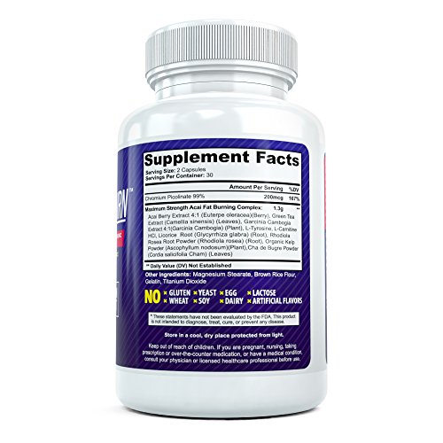 -. Feature : Professional strength fat burning supplement that contains a unique proP.R.Ietary formula allowing you to lose up to 10 - 15 pounds per month! / Raises metabolism, suppresses appetite, burns excess body fat and builds lean muscle / Utilizes an advanced formula consisting of concentrated Acai Berry in addition to several clinically proven weight loss ingredients allowing you to burn fat quickly and efficiently / Maximum strength formula reduces overeating, increases energy levels and contains high levels of antioxidants / Each bottle contains 60 Capsules. Contains 200mg of Garcinia Cambogia per serving