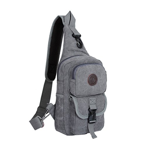 Daosen Sports Unbalance Backpack Sling Bag for Men Canvas Chest Pack/Hiking Bag Gray