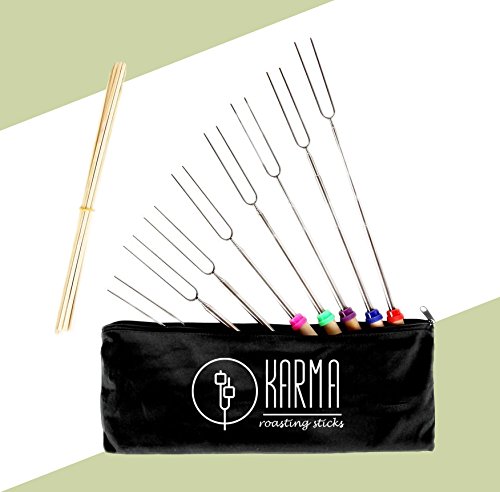 BEST QUALITY/PRICE TRADE-OFF ON AMAZON – KARMA Marshmallow Roasting Sticks Bundle Includes: 8 Piece Telescoping Fork Set (32“) + Travel Bag Pouch + 10 Bamboo Skewers!