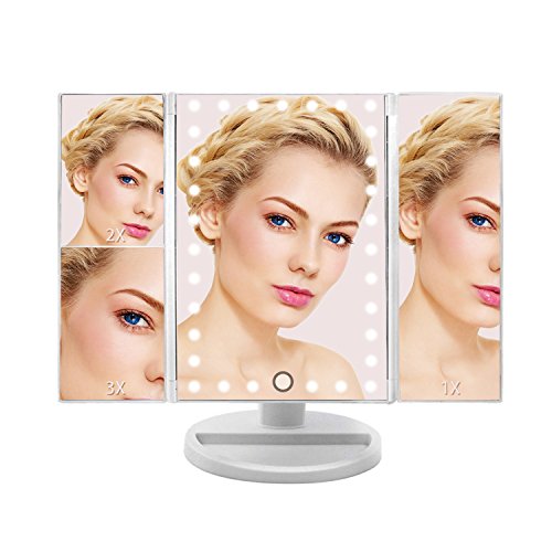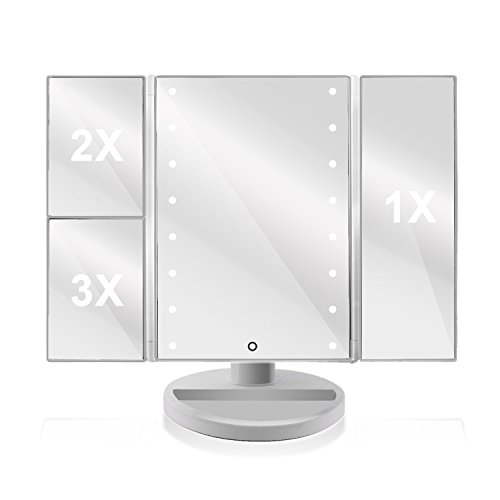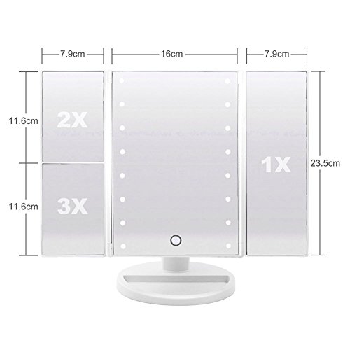 Lighted Makeup Mirror,CarBoss Touch Screen 180 Degree LED Table Makeup Mirror -Three Panel 16pcs USB Rechargeable Led Light Tabletop Cosmetic Mirror with USB Cable,2X and 3X Magnification