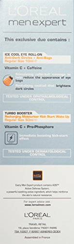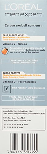 Men Expert Set:. 1x Hydra Energetic Turbo Booster 50ml/1.7oz. 1x Ice Cool Eye Roll-On 10ml/0.34oz. The Turbo Booster is concentrated with Vitamin C to immediately awaken and invigorate skin. Enriched with Pro-Phosphore. a unique active to accelerate production and storage of ATP. Unveils recharged and more flexible skin. The Eye Roll-On helps revitalize fatigued looking eyes in the morning. Minimizes appearance of under-eye bags and dark circles. Creates a radiant. energetic and youthful looking eye zone.Feature