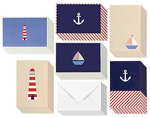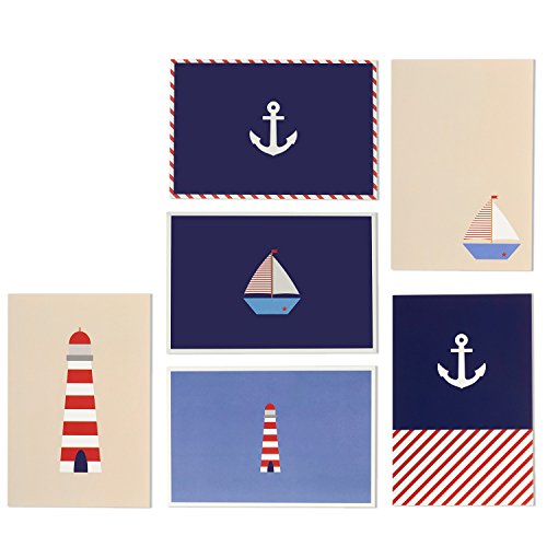 48 Pack All Occasion Assorted Blank Note Cards Greeting Card Bulk Box Set - Nautical Sea Theme Designs Sailboats, Anchors, Lighthouses Notecards with Envelopes Included 4 x 6 inches