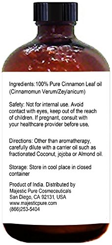 Cinnamon Essential Oil From Majestic Pure Extracted From Leaves, Pure and Natural Therapeutic Grade, 4 fl. oz.