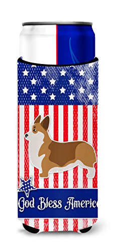 Caroline's Treasures USA Patriotic Corgi Michelob Ultra Hugger For Slim Cans, Slim Can, Multicolor