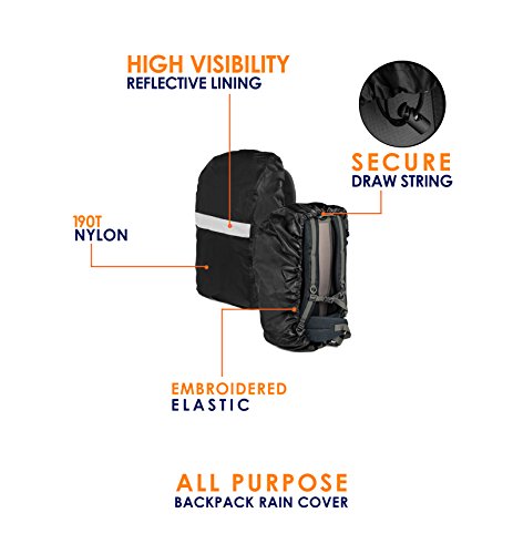 -. Title : Backpack Rain Cover with Reflective Lining and Travel Bag - Waterproof Knapsack Protector with Elastic Lining and safety Reflector for Biking | Hiking | Canoeing | Camping | Mountaineering