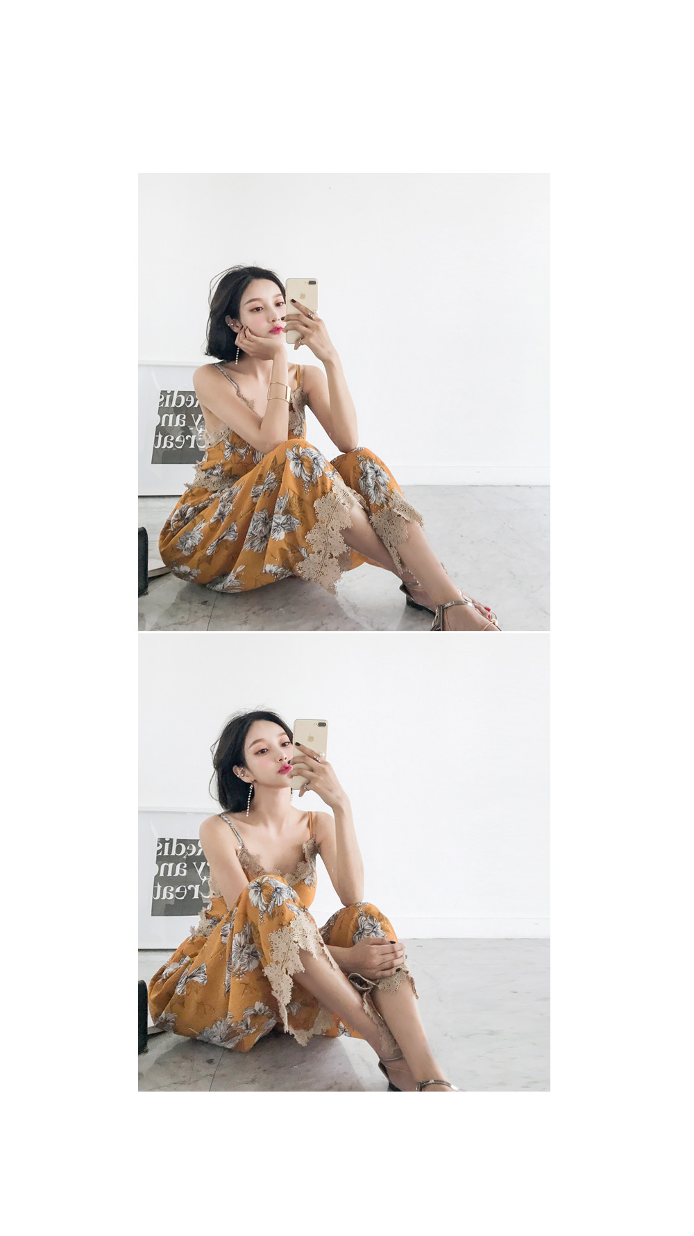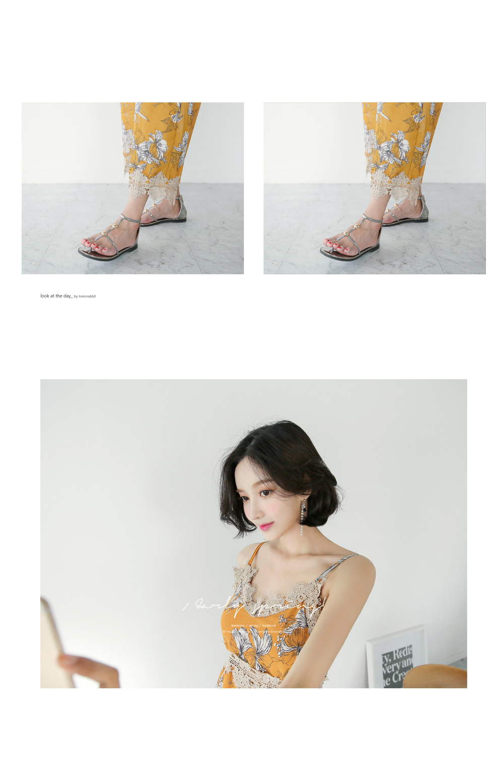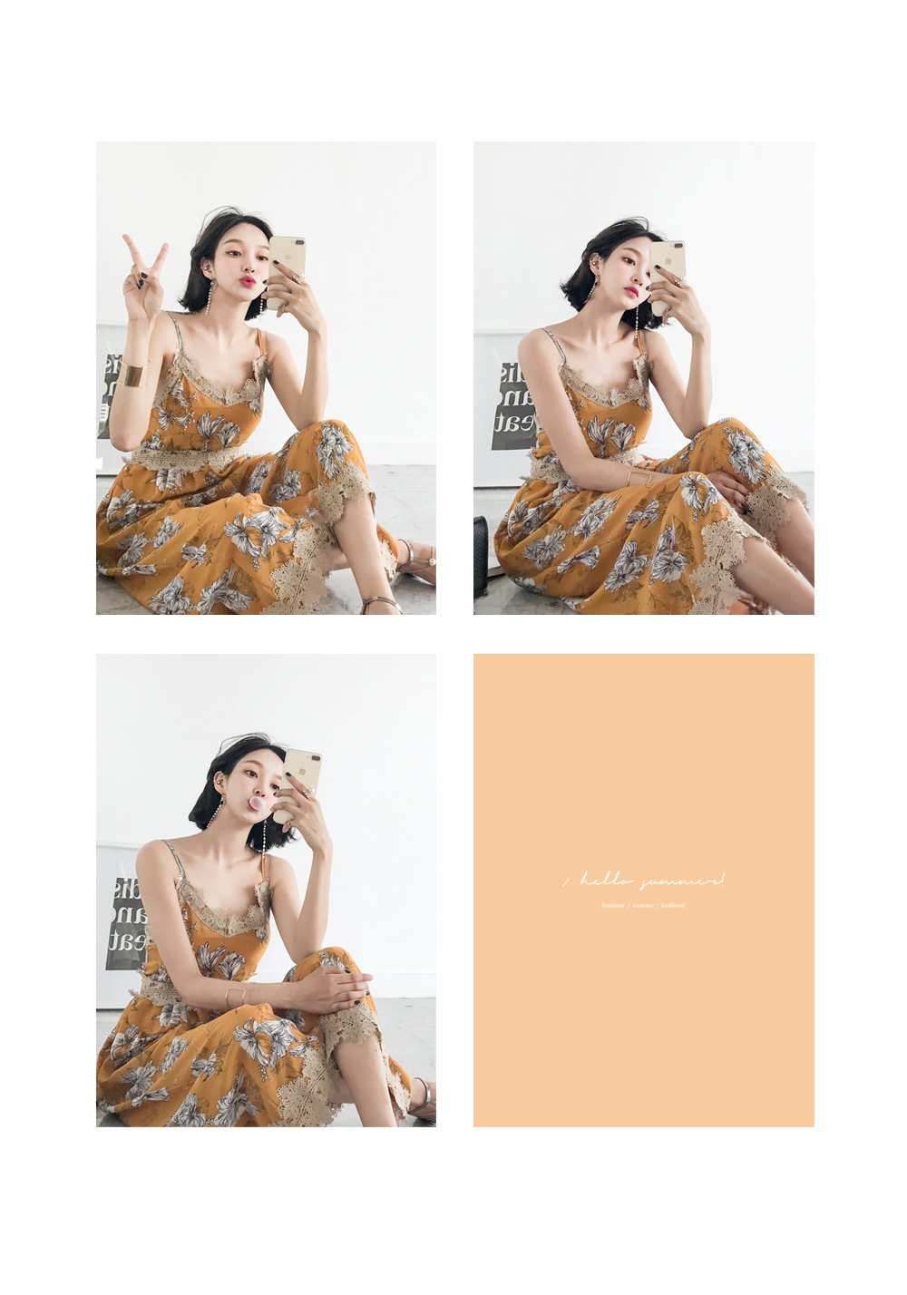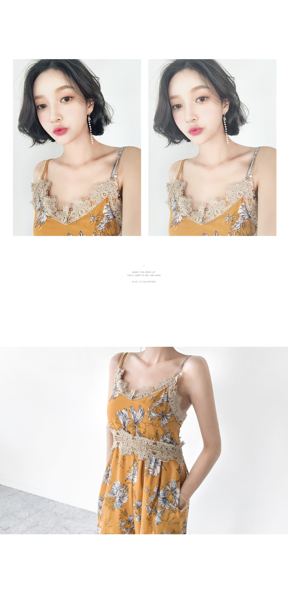 바스트라인을 따라 레이스패턴으로 여성스럽게 매치해 주었으며